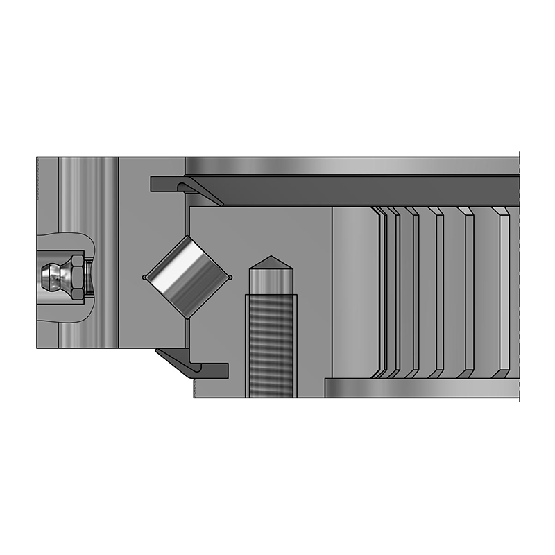 Kreuzrollenlager. außenverzahnt. vorgespannt. abgedichtet. Schmiernippel am Umfang des unverzahnten Rings
