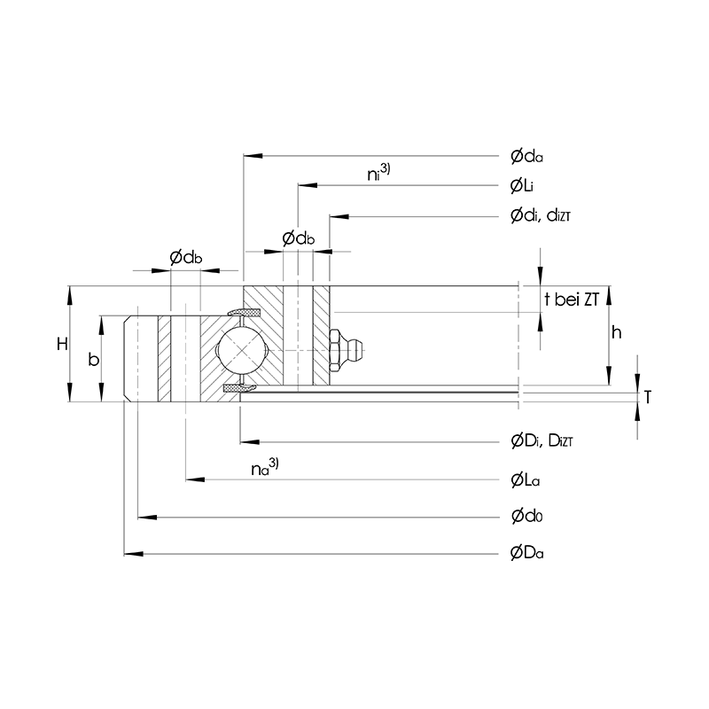 Four-point contact slewing bearing VA, external toothed, bearing clearance selectable, sealed, grease nipple on the circumference of the untoothed ring