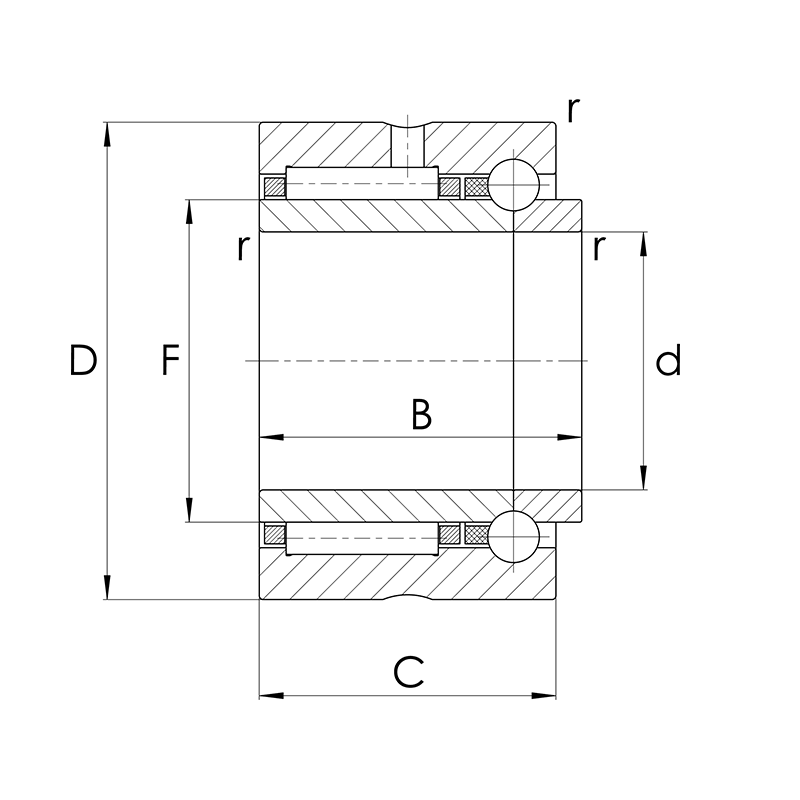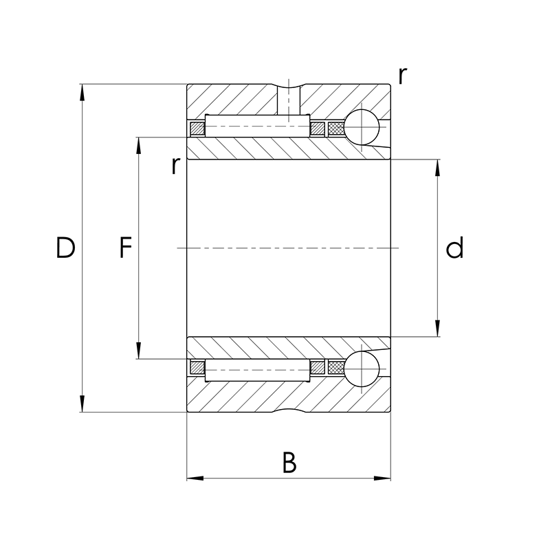 Combined needle bearings are not self-retaining. The bearing parts (axial part / radial part) are coordinated with one another and must not be interchanged during assembly. The bearing is secured by a snug fit on the shaft and in the housing.