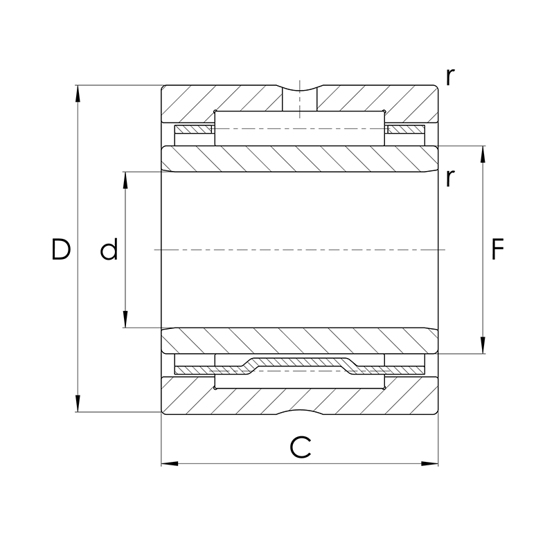 Nadellager NA69, Abmessungen nach DIN 617-1 / ISO 1206