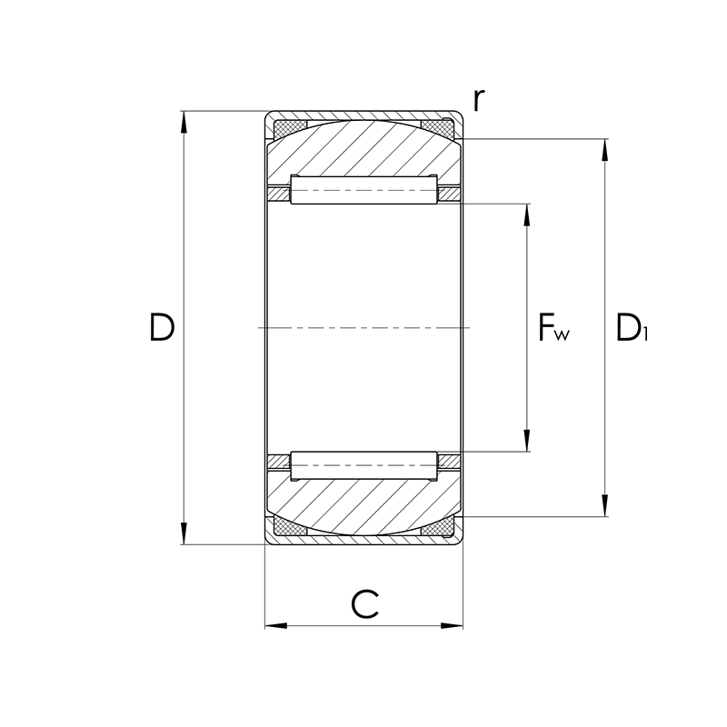 Nadellager RPNA, Abmessungen nach DIN 617-1 / ISO 1206